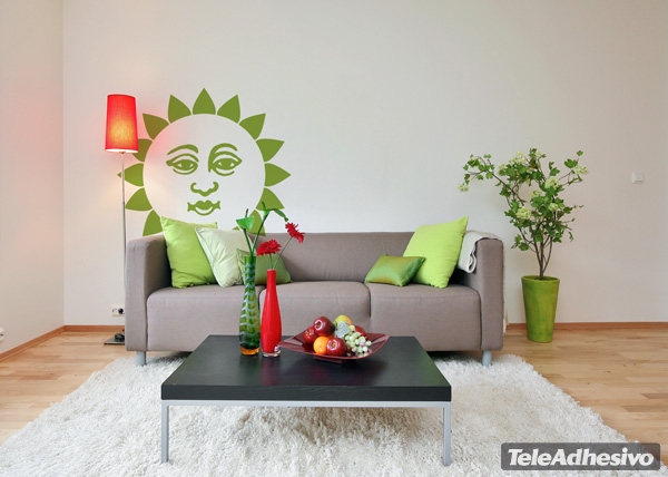 Si gozas en tu salón de una pared limpia y amplia y estás buscando algún motivo decorativo sencillo y vistoso este sol es tu vinilo. Combinados con otros colores propios de la naturaleza como marrones, verdes, naranjas, azules,… crearás un ambiente agradable y original, sin recargar. Combina con planta naturales y mobiliario u otros objetos decorativos realizados en materiales naturales como maderas.