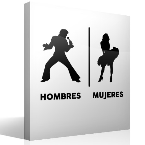 Tiene un bar de copas y andas como loco buscando que poner en las puertas de los aseos. Quieres algo original y divertido. Incluso te gustaría dar con algo que coincida con el estilo de tu local, roquero y nostálgico.