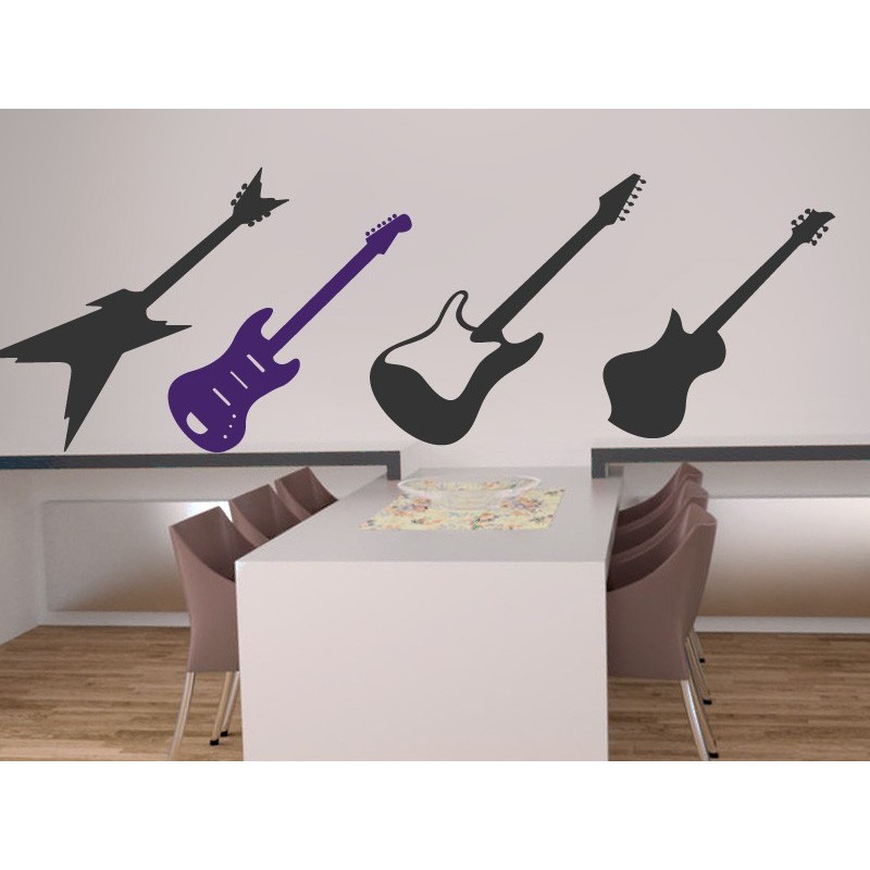 Para todos los amantes de la música, y sobre todo de los instrumentos de música, pueden utilizar los vinilos adhesivos con los diseños de las guitarras profesionales. Las guitarras son un diseño ideal para las paredes de los estudios de música, o lo sitios en donde se practique a diario algún grupo musical. Los vinilos adhesivos de guitarras siempre recuerdan al buen rock, que todos aquellos fanáticos de este tipo de música desean impregnar en cualquier lugar en donde se encuentren.