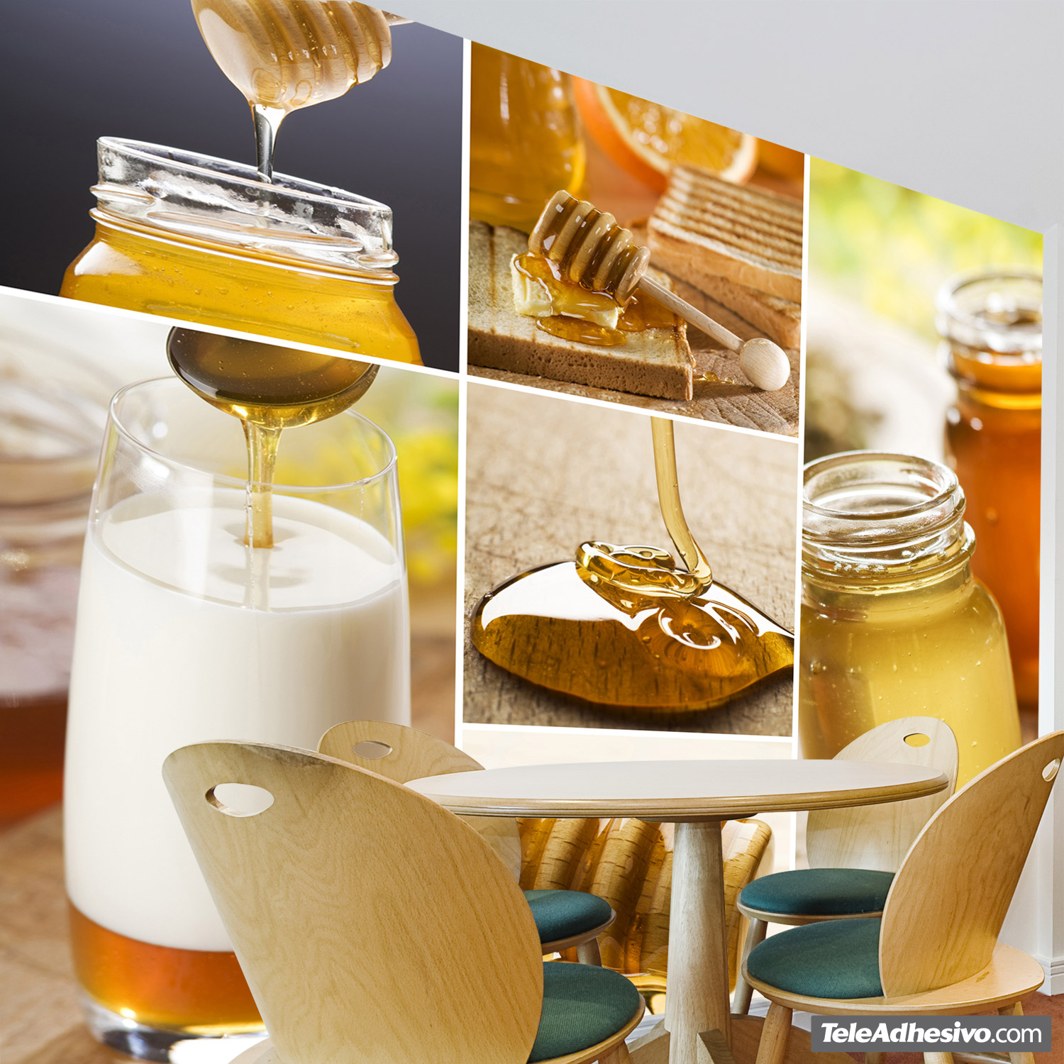 Para decorar ese trozo de pared y para disfrute visual de sus clientes este mural con imágenes que abren el apetito e invitan a tomar una tostadas con deliciosa miel de la alcarria. Se trata de una decoración rápida y sencilla que adornará y vestirá la pared de tu local. Fácil de limpiar y dará una aspecto moderno pero mostrando la esencia de tu producto, un producto tradicional y natural proveniente directamente del campo.