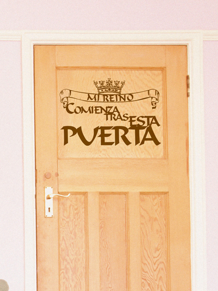 Este vinilo con esta frase que nos recuerdan que existen también tenemos nuestro espacio aunque haya unas normas que cumplir; puede colocarse en la puerta de casa para adornar en la de un cuarto, adolescente. Otra opción que me parece muy buena idea es colocarlo a la entrada en un piso compartido de estudiantes o jóvenes trabajadores. Nunca está de más echar un vistazo cuando entramos o salimos de casa.