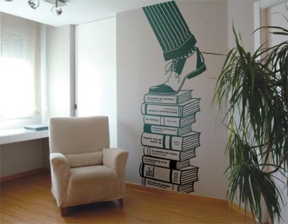 Muchos de los vinilos de libros pueden dar la impresión de tener una pequeña estantería en la casa, haciendo que el efecto de biblioteca sea aun más llamativo para los visitantes. En las habitaciones de los niños también se puede decorar con vinilos de libros infantiles, con los cuales ellos se identifiquen, y puedan tomar amor a la lectura. Los libros infantiles se pueden combinar con frases, y colores que iluminen la habitación.