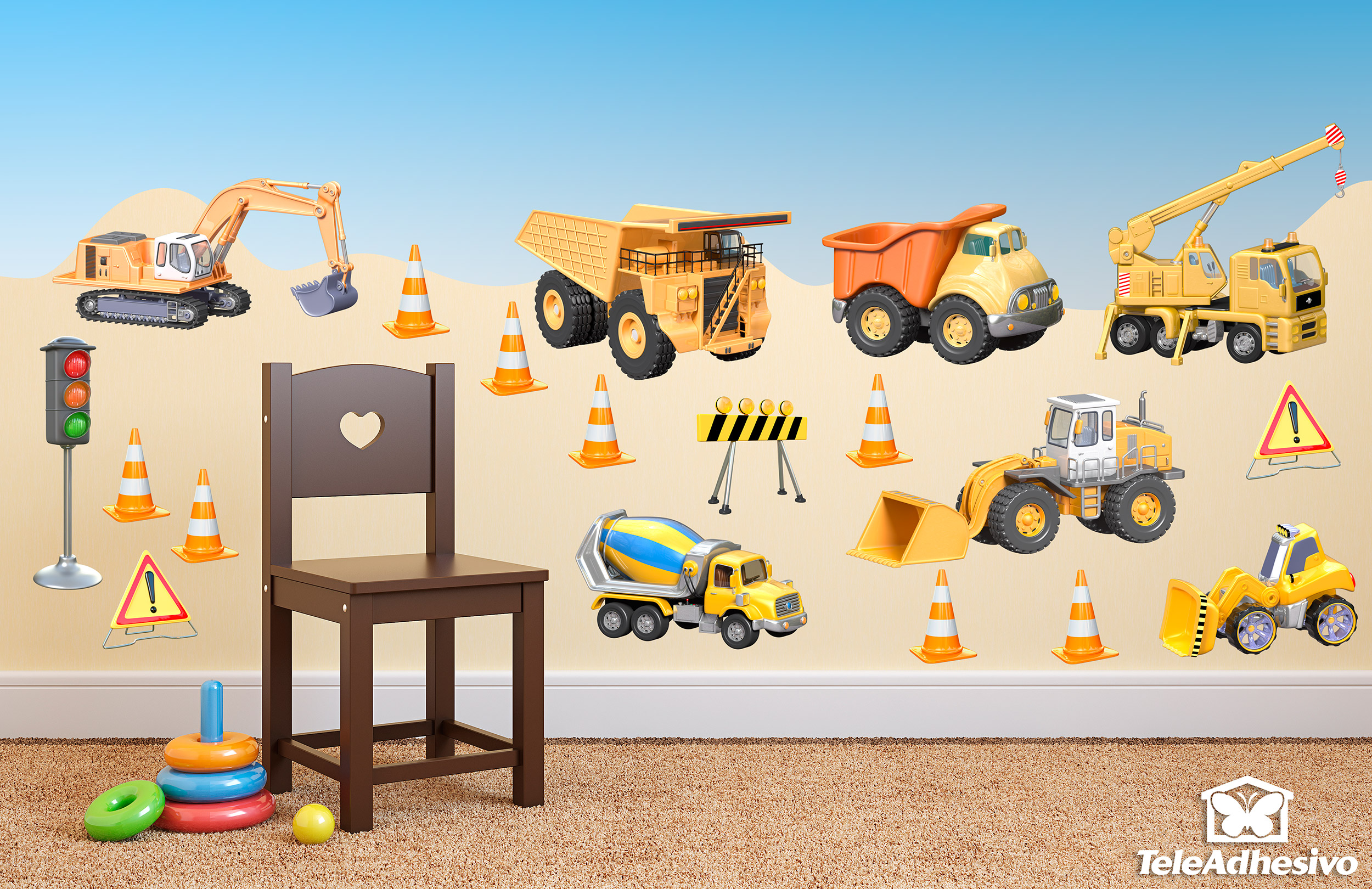 Decora su habitación con este kit de camiones de construcción con grúas, cementaras,… Ellos aprenden a construir su entorno, fantasean con trabajar en el mundo de la arquitectura descubriendo que no se trata solo de construir edificios, sino que es soñar, explorar, pensar, imaginar, investigar, dibujar…pero también es calcular, medir, resolver, representar y construir.